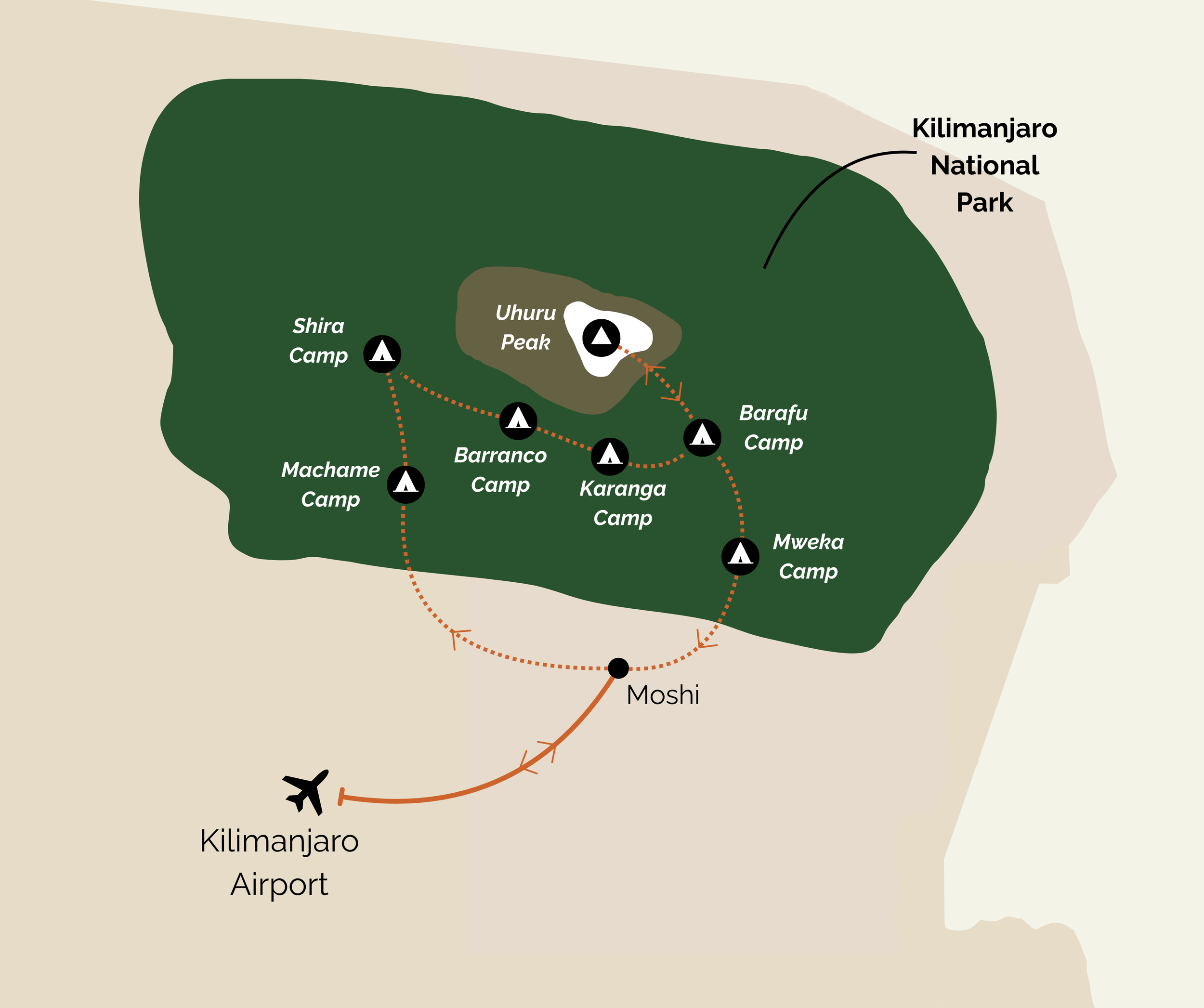 Onderstaand vind je een voorbeeldprogramma voor een Beklimming van de Kilimanjaro-reis. Matventures maakt alle reizen op maat en alle aanpassingen aan het voorbeeldprogramma zijn dus mogelijk. Wil je de Kilimanjaro beklimmen via een andere route? Eén of meerdere rustdagen in Moshi toevoegen voor of na de klim? Vraag een offerte aan of stuur ons een berichtje en krijg een reisprogramma op maat!