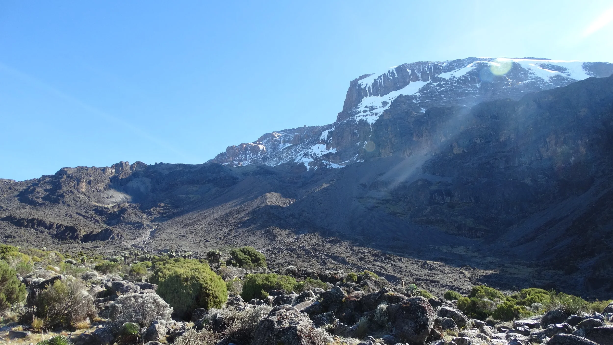 De voorbije nacht hebben we niet al te best geslapen. Desondanks staan we toch weer op met frisse moed. Vandaag staat de Barranco Wall op de planning: een 250 meter hoge wand waar we over moeten. Vanuit onze kampplaats ziet het er redelijk steil en indrukwekkend uit, maar dat is grotendeels gezichtsbedrog. We ervaren geen enkele moeilijkheid om deze hindernis te overwinnen. Het is wederom een prachtige, zonnige dag en na de wand wandelen we rustig, lachend en pratend naar Karanga Camp. Vanuit dit kamp trekken we de volgende dag naar het hoogtekamp. Dit wordt onze hoogste slaapplaats op 4670 meter. Meteen na het avondeten kruipen we al onder de wol want er wacht ons een lange, koude nacht.