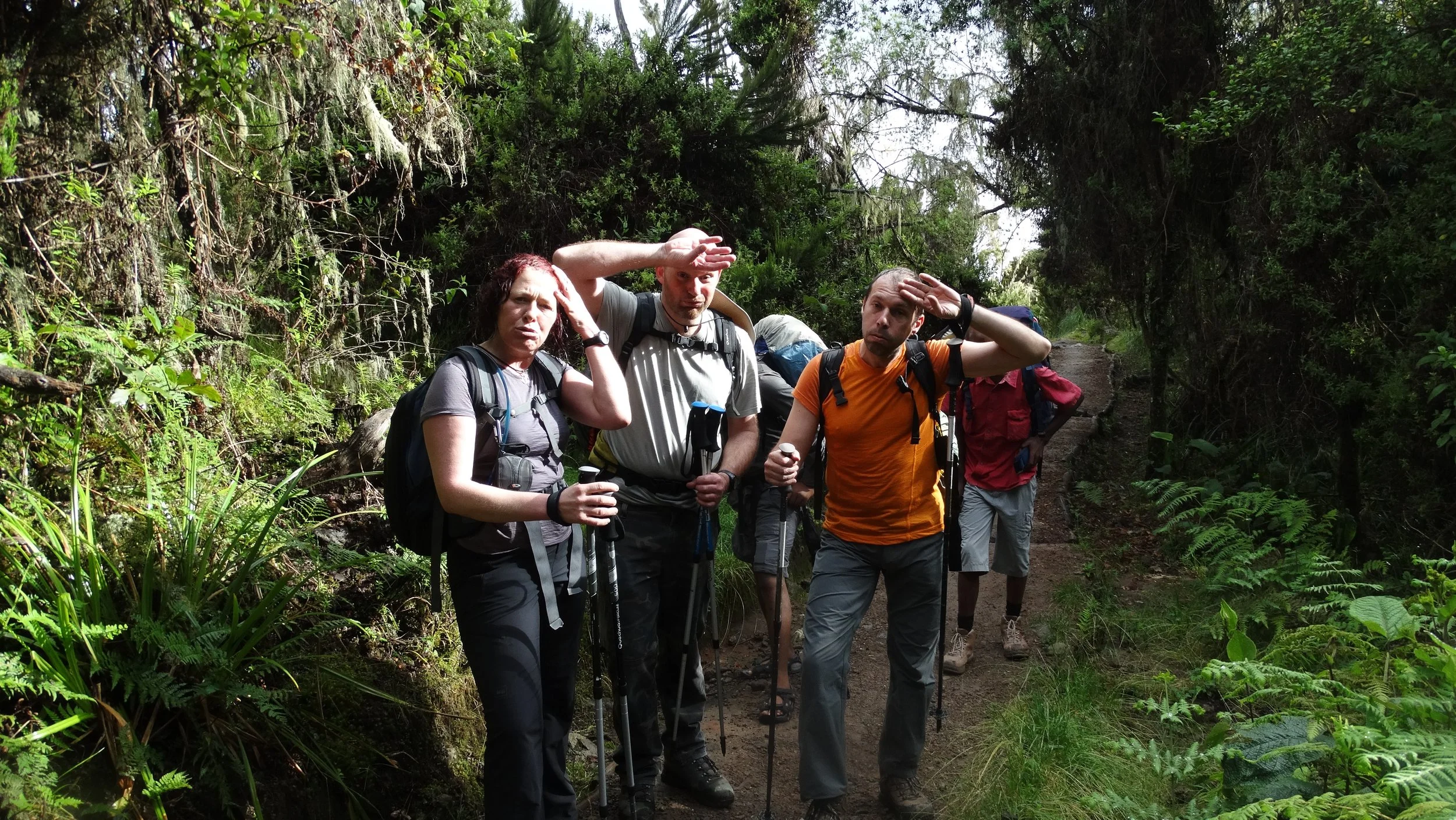 Zweten op weg naar Machame Camp.